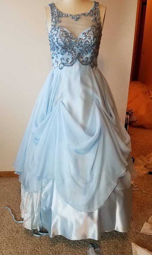 pinning up the top layer of the skirt