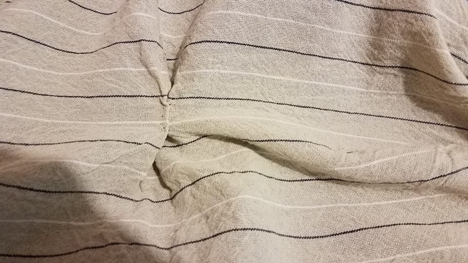 pleat in back of overskirt to shorten
