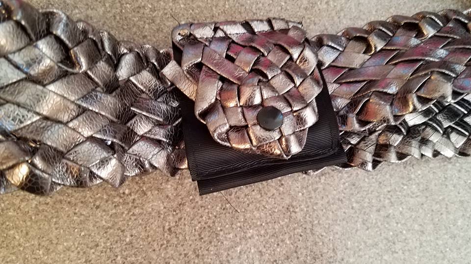 purse for coin made of grosgrain ribbon, snap and belt end
