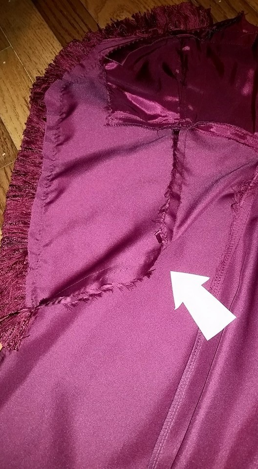 Inside view of cape . . you can see the structure of the original dress, with the added front insets.