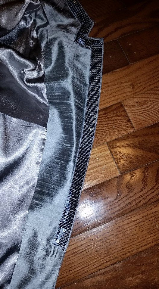 My first major find was a grayish-silver shiny jacket at a Thrift store (I neglected to take a picture before I added the sequins).