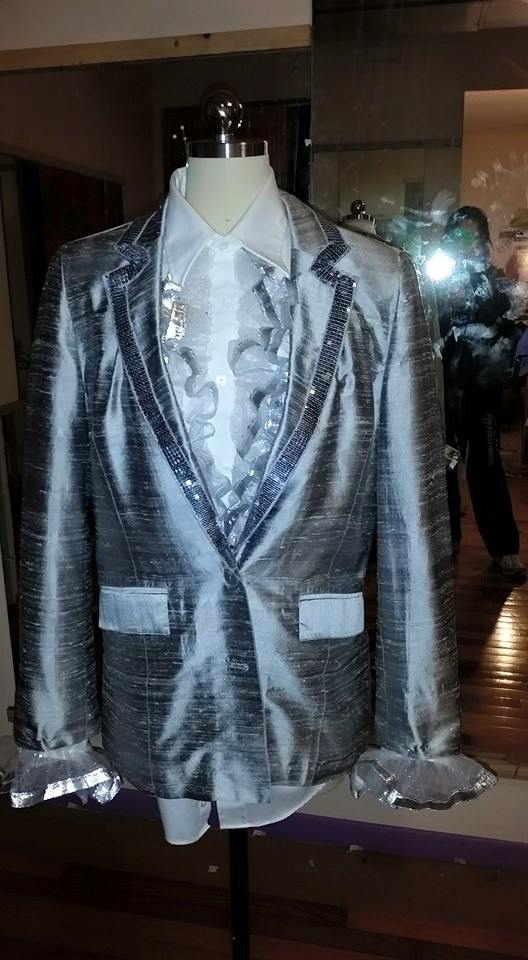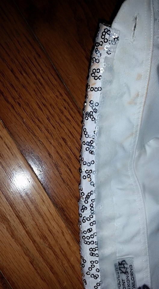 One mistake I did make was to extend the sequins all the way down to the neck portion of the collar. This was very itchy for the cast member wearing the costume. I later went back and added a piece of ribbon to protect his neck from the sequins. Another time, I would mark where the collar fold over, and just applique the sequins up to that point.