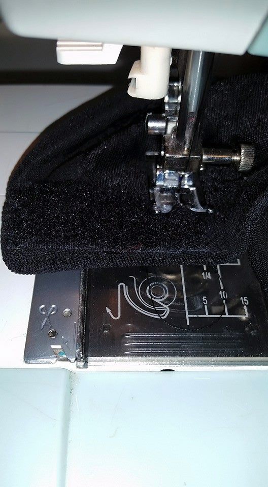 The “hard” side I sewed facing away from the body, making a “tab” that will attach to the soft velcro.