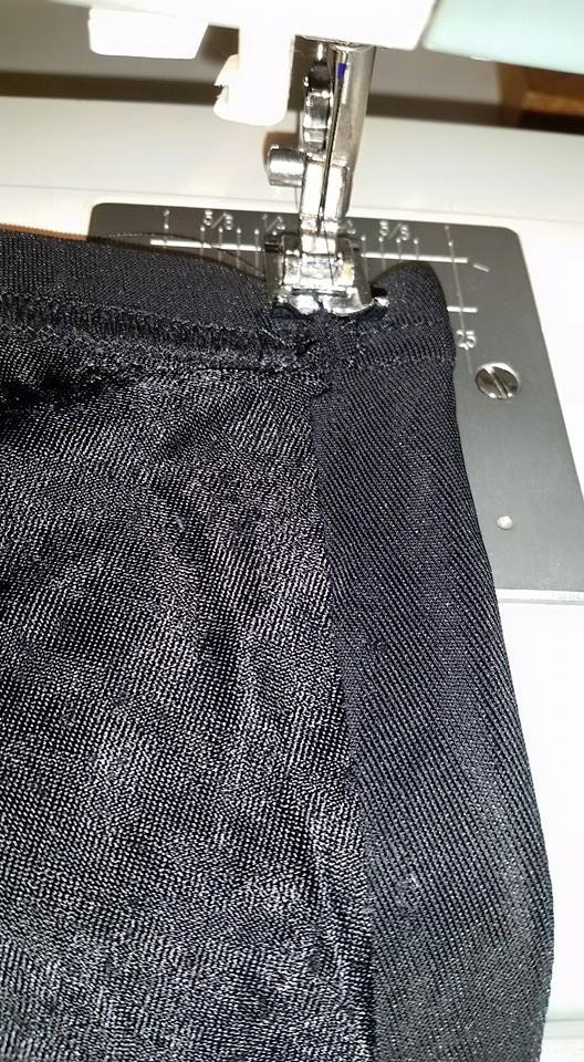Important upcycling hints: don’t make work for yourself. Cut garments along the seams (or just cut the seams out in many cases), Use existing features in the fabric–don’t cut the waistband off, use it. Don’t cut the zipper out–just close it and ignore it. Use as much of the existing finish work as you can–shorten things from the cut edge side, not the hem.