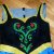 This is not a particularly good image–but you can see that the cape sits loosely around the neck, and the front edges are raw. There is a pin holding it shut. This would be a perfectly fine cape for dress-up, or a one time quick costume. At this point you could also glue on emblems or other decorations if desired.