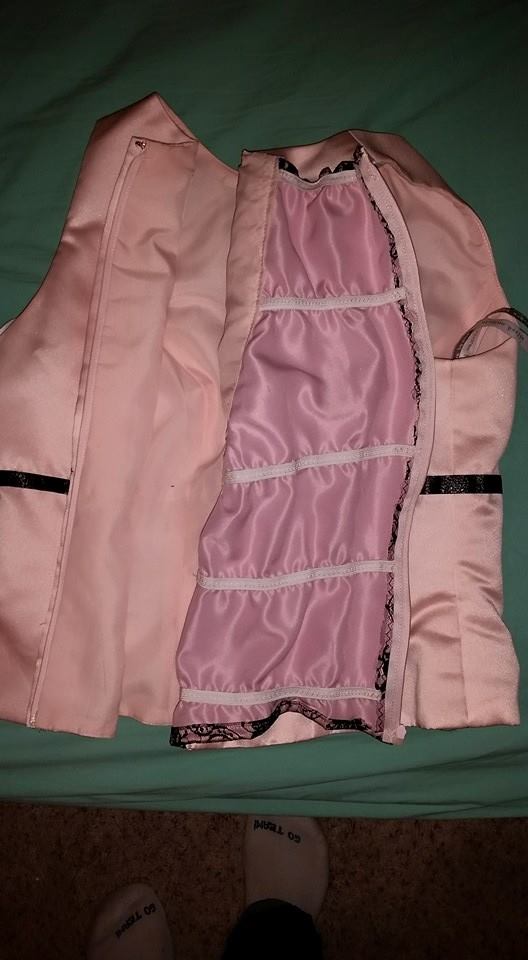 This last one is a variation on a theme. This was originally a top & skirt ensemble. The top had a separating zipper in it. To make it larger, the zipper was removed on one side, and an inset of fabric added, and then the one side of the zipper was replace. The volunteer who did this added the elastic to help with fit. Just another potential way of doing an alteration.