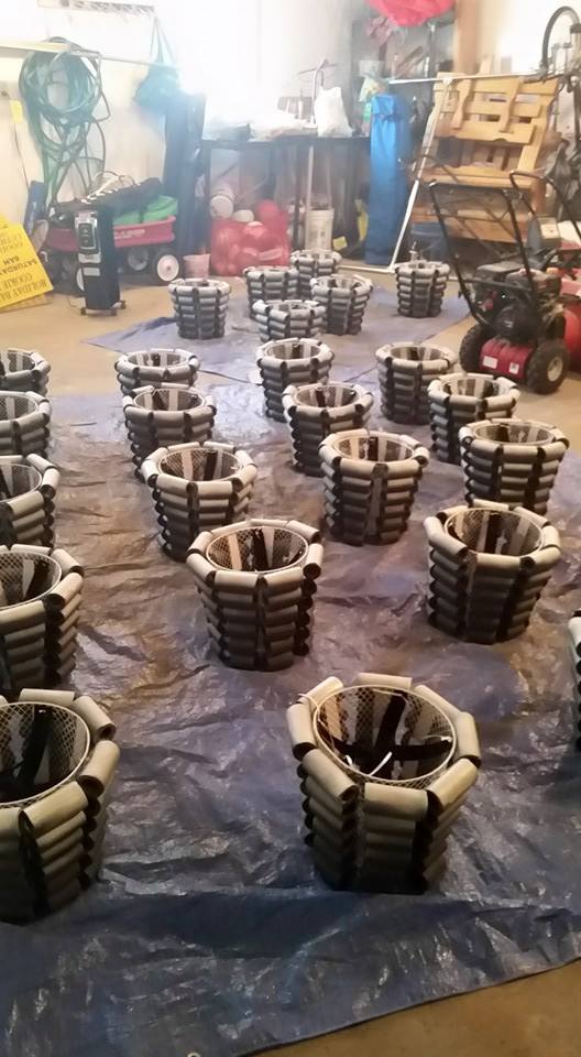Hats set out for painting. I painting the bottom edge first, and then flipped them over and did the rest.