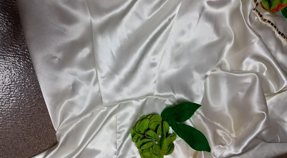 I made a decorative tablecloth out of the leftover satin from the costumes and leftover decoration.