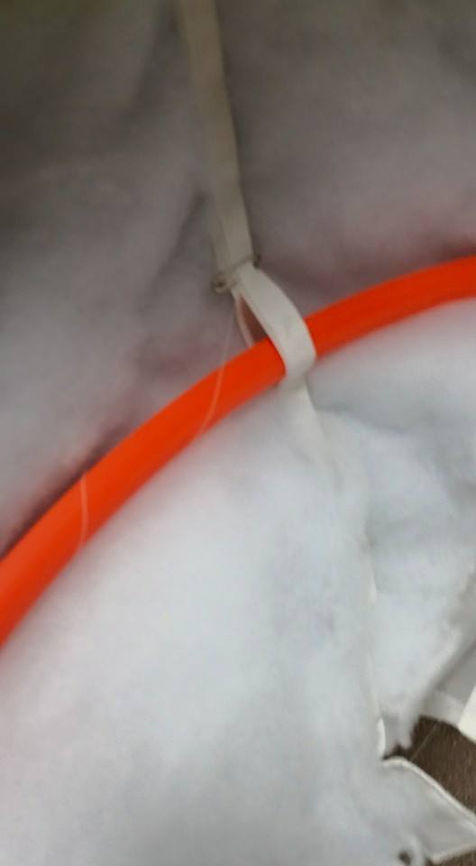 The hoop is the first item to be constructed. The reason being . it is easier to fit the dress to the hoop, than to try to create a hoop to match the dress. We opted to go with the hula hoop method of making a hoop. Yes, the hula hoops still rattle, but you don’t hear it under the dress 🙂