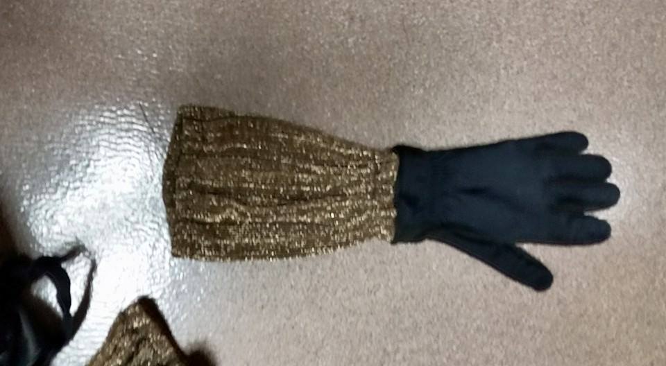 And black gloves with drapes attached to cover the gap between the ends of the sleeve jacket and the hand pieces.