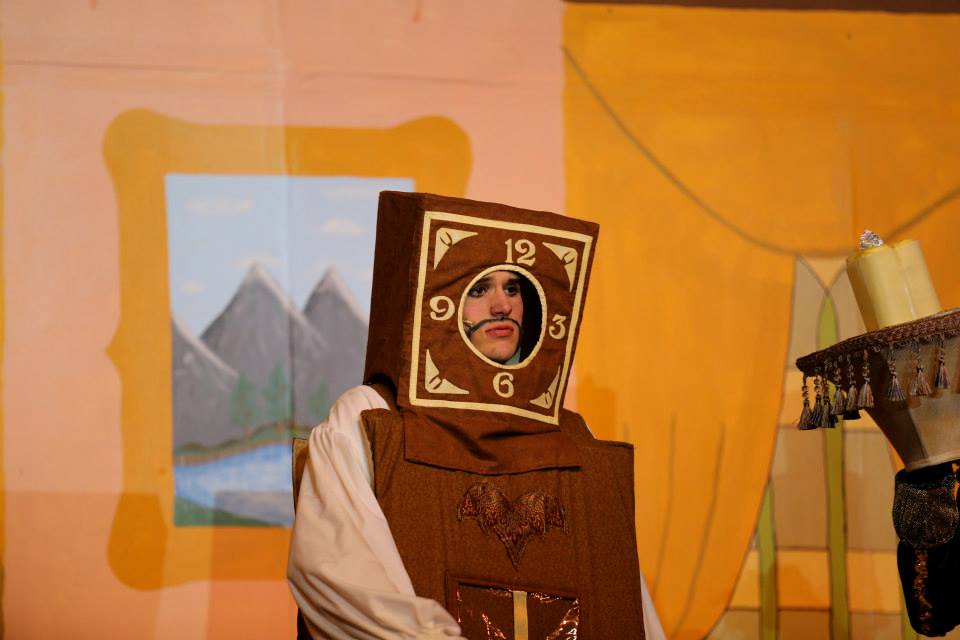 Cogsworth is a clock, so I think his costume by definition needs to have some sort of boxy shape. Typically it will have some sort of hat/headpiece, as well as a pendulum. Variations include how and where to include a clock face. Cogsworth is rather pompous, so his costume often includes an elaborate curled wig, and decorative embellishments. One key component in the show is that as the characters are becoming less-human and more Enchanted, Cogsworth gains a winding key on his back . .so that is something to take into consideration.