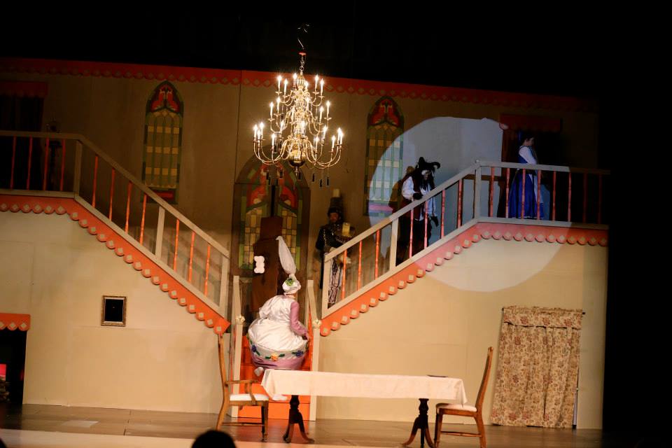 He couldn’t bend his legs. We all enjoyed a humorous rehearsal as he rocked his way back and forth to try to get up and down the stairs . . I think in the end he stood at the bottom and looked longingly up at the rest of the characters. His costumer took his outfit home and did a little fixing!