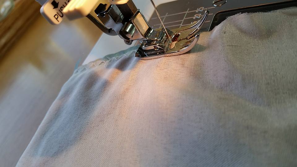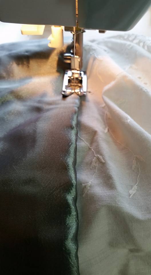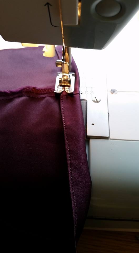 Sewing the bottom together . . ignore the pleat, that was an oops! I took out. I just left the edges uneven . .it doesn’t show.