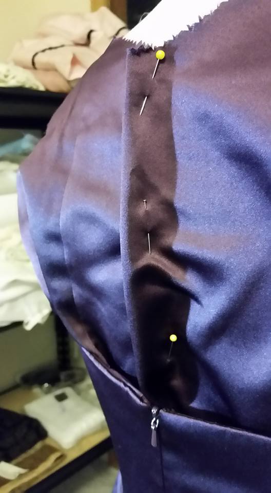 I had been helping my sister find some dresses for her production of “Footloose” and several of the 1980’s vintage party dresses had puffy sleeves that had a casing for elastic that served as a combination shoulder strap and attachment point for the top of the sleeve. Since this dress is supported by the boning & fit of the bodice, and I didn’t need true straps to support the weight of the dress, I thought this technique might work.