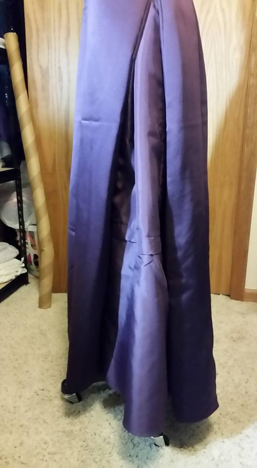 During this time, I spent many trips to thrift stores looking for inspiration. I suppose part of the problem was that I didn’t have a clear vision of the sleeves at this point. I had a purple velour skirt that I found to supplement the fabric . . . but I really didn’t want to, as one of my (unspoken) goals was to remake the dress using only the fabric from the dress.