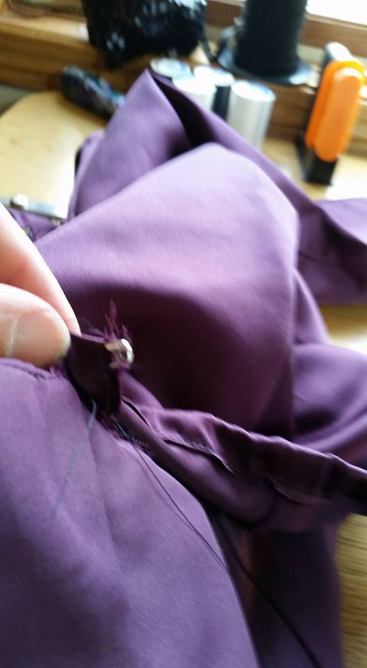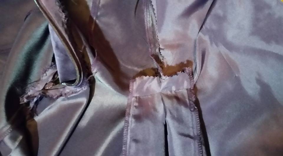 I cut the lining off the bodice, and also from the seam where it was attached (at the front pleat).