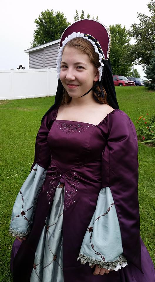 What is a period gown without a coordinating headpiece? Not nearly as much fun . . THAT is for sure! I have to admit my favorite Princess hat is the tall pointed kind with a veil on the end. But, for this outfit, a French Hood is probably more appropriate.