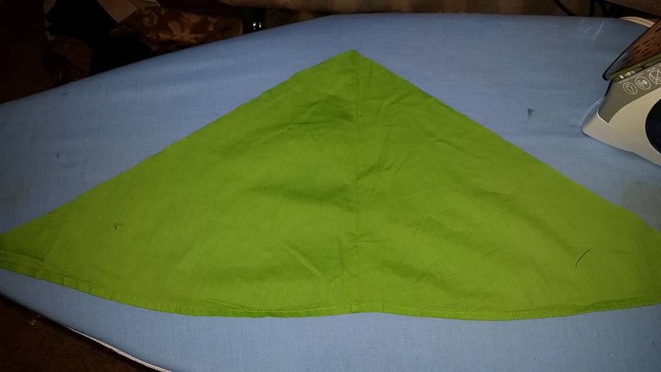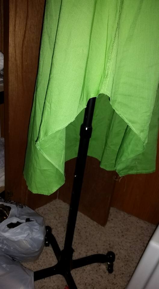 I added a few reinforcing strips of duct tape to hold it down, and to tape it together at the bases. I then sloppily glued some green fabric from the outer skirt to the top.