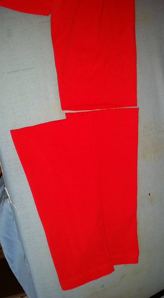 Solution: cut off the bottom of the sleeves. First I cut off one, then I used that to measure the second one.