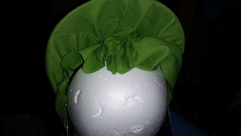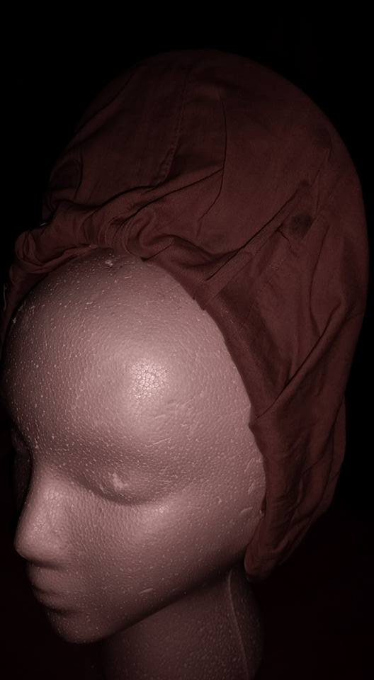 I deliberated on what to use to make the base of the hat. I wanted it to have some height, and I wanted it to be stable on the head. I thought about a baseball hat . . and as I flipped up the brim . . .I thought “FRENCH HOOD!”