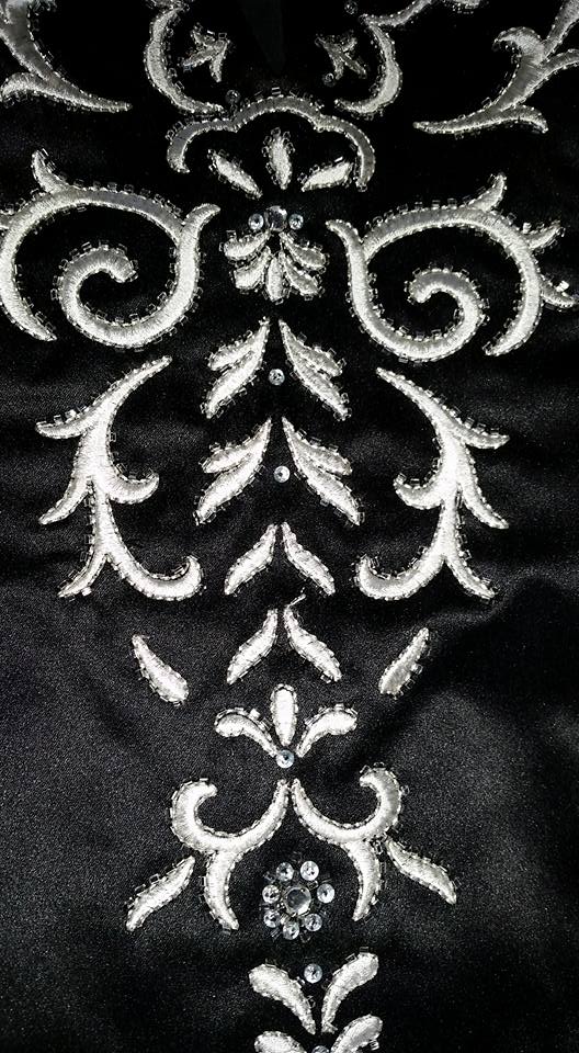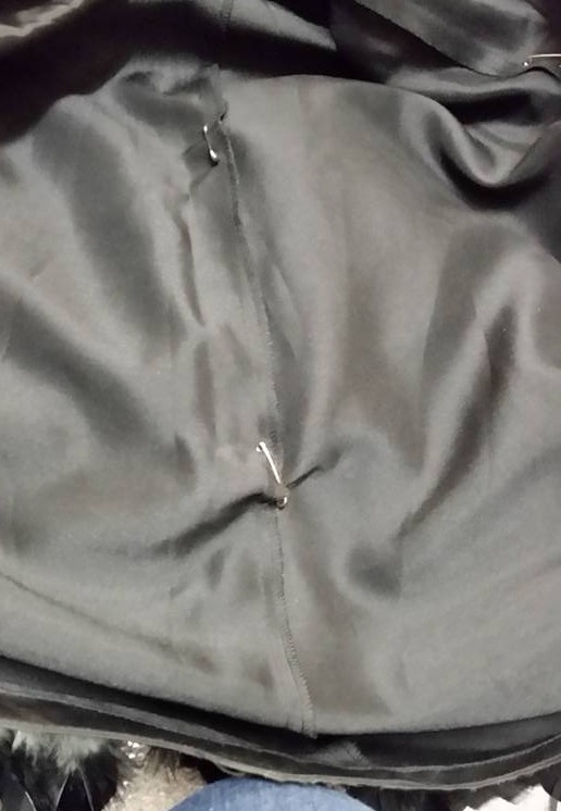 The dress was a bit small, so we added a stretchy black fabric along the zipper. ( This post for a description of various ways to do this.)