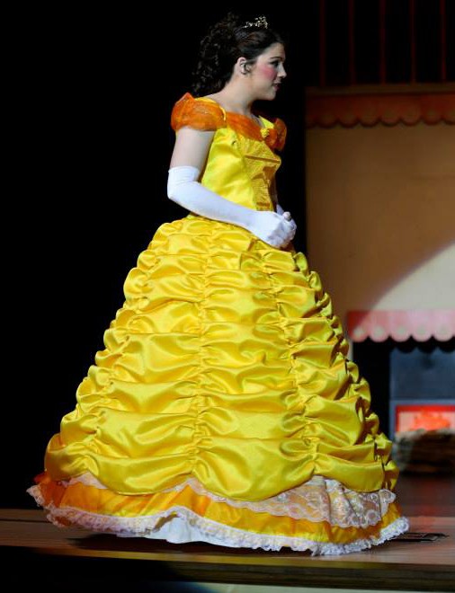 Costuming Belle is not a particularly creative project. Every small child who comes to see the production expects to see Belle wearing her iconic blue jumper with a blue bow and white apron. And, again, she is expected to wear a yellow poofy ball gown. There are some things you just can’t fight.