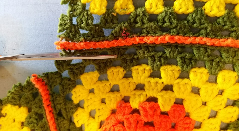 Cutting along the bound edges, leaving enough extra to sew together.