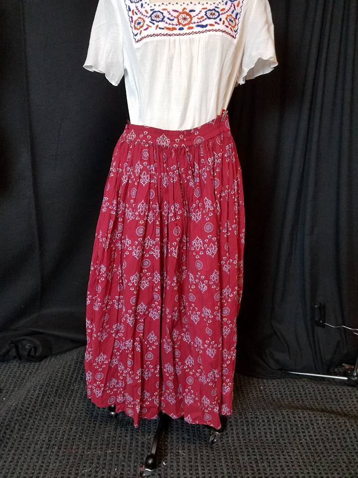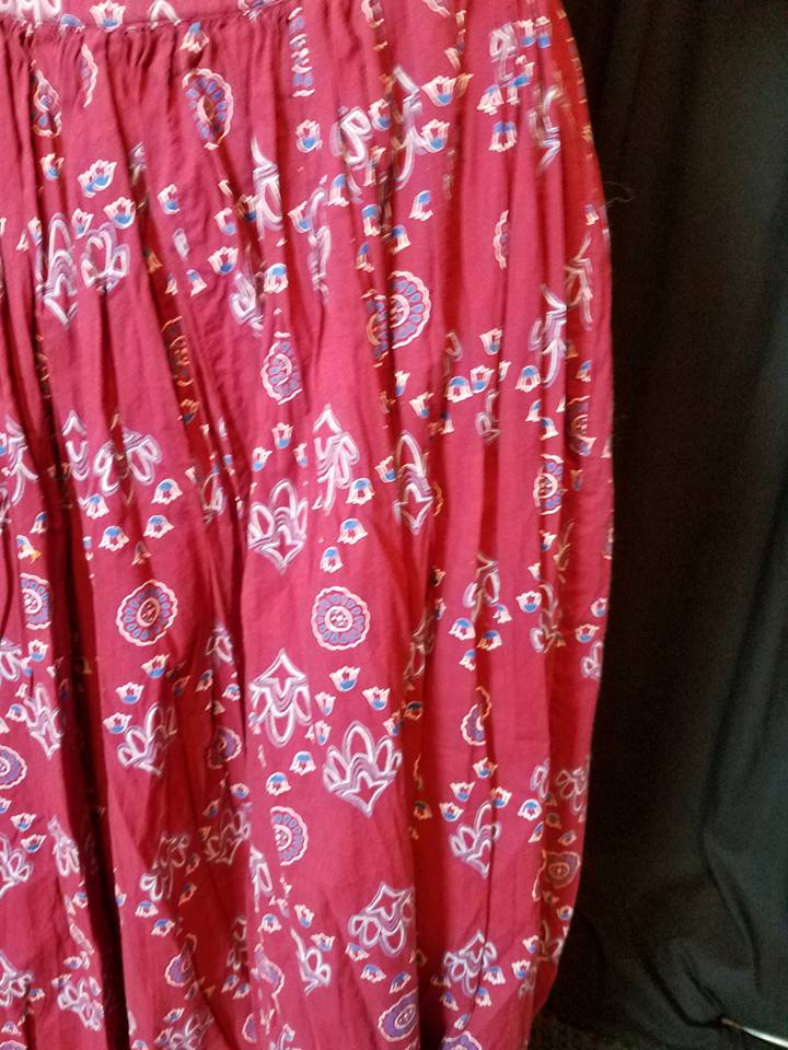 I paired this with a full patterned skirt, that had some rather worn, stretched out elastic in the waist.