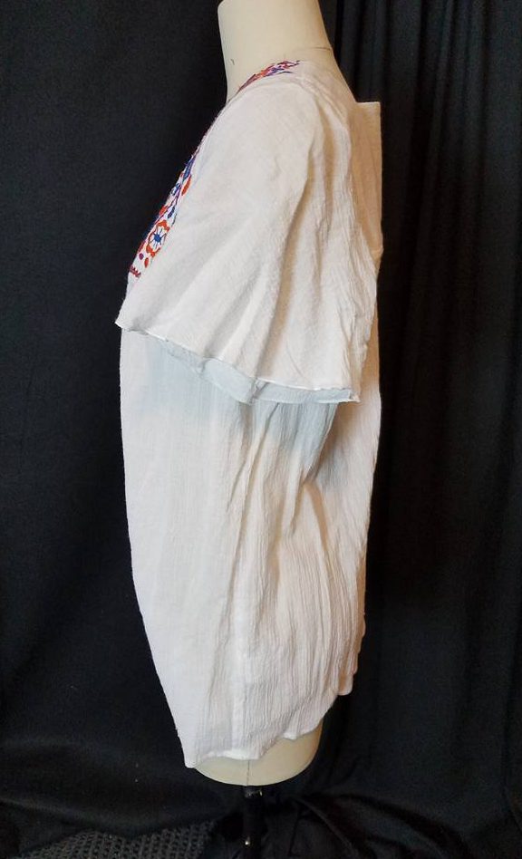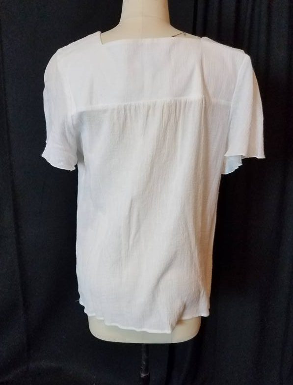 The blouse was made of a light gauzy sort of fabric. It had a square neckline and wide fluttery sleeves.