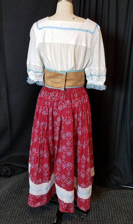 This post is about the third costume that I made for a local production of “Young Frankenstein”. These costumes were brighter and more eclectic than the ones I had made for “Cinderella” and “Beauty and the Beast”, and I was able to incorporate more colors and patterns. The look is fun and colorful, and they were a lot of fun to make–and a great way to use up a few pieces from my stash. This costume was probably the quickest and easiest to make–no major structural changes, just tweaking and trimming.
