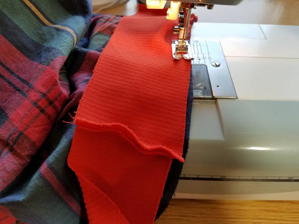 I then cut some strips out of scraps to make the waistband. I did have to splice these together to get a long enough length.
