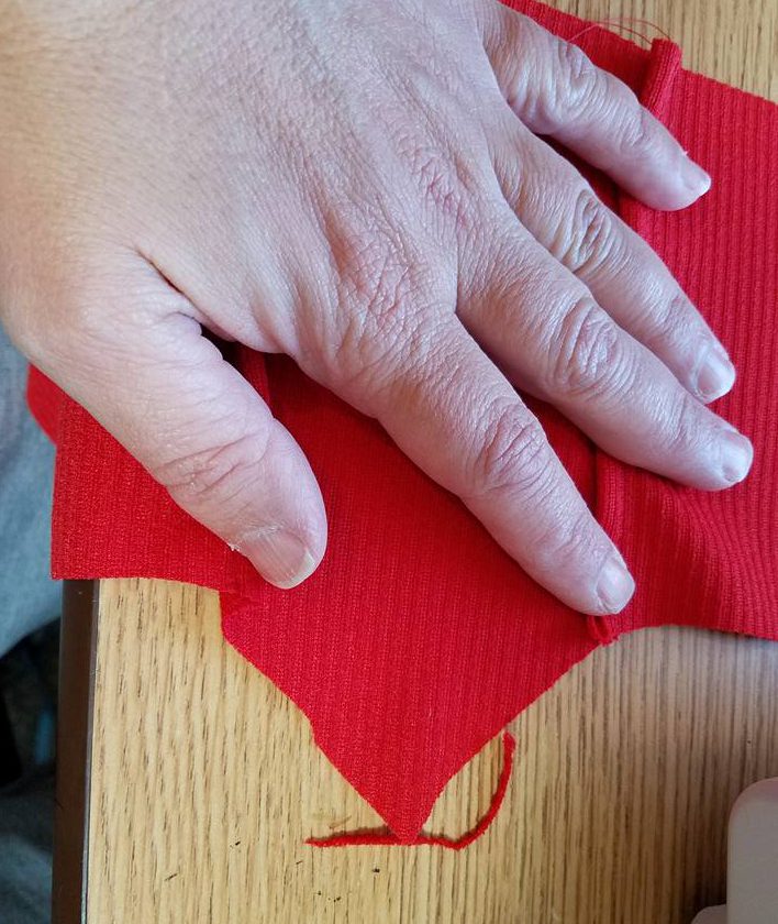 Keep watching the underside as you stitch to make sure it isn’t folding. Oops! Here was a little ripping–of course where I had backstitched.