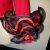 I made coordinating cuffs in a similar fashion. I didn’t have enough stiff interfacing, so I used black felt as the base. I covered this in the same shiny red non-woven material, and trimmed it with sequin braid and more of the fringe. I added some sequin trim to the bottom of the sleeves, and then the cuffs attach above that with hook and loop tape.