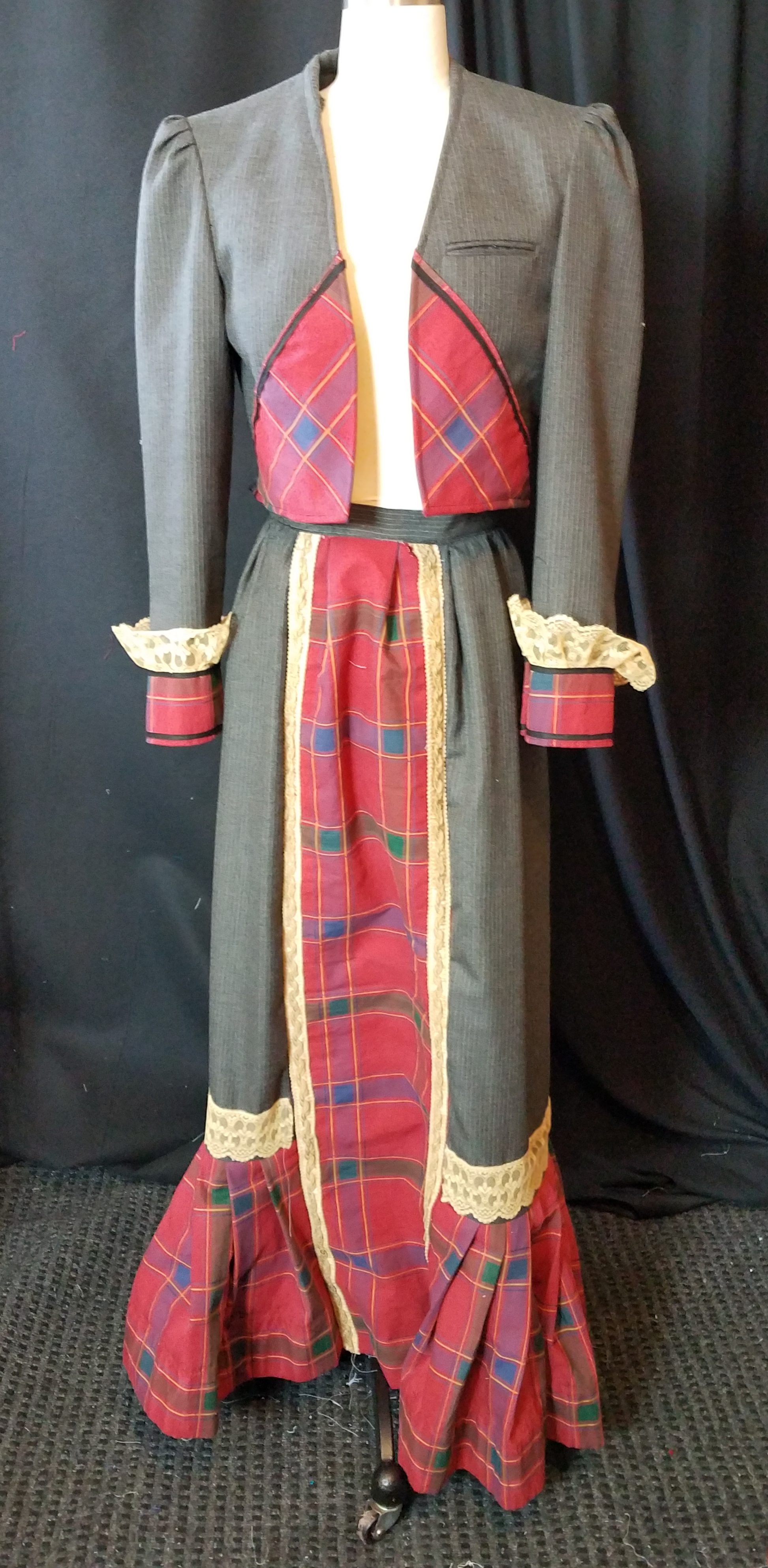 front, gray and plaid ensemble