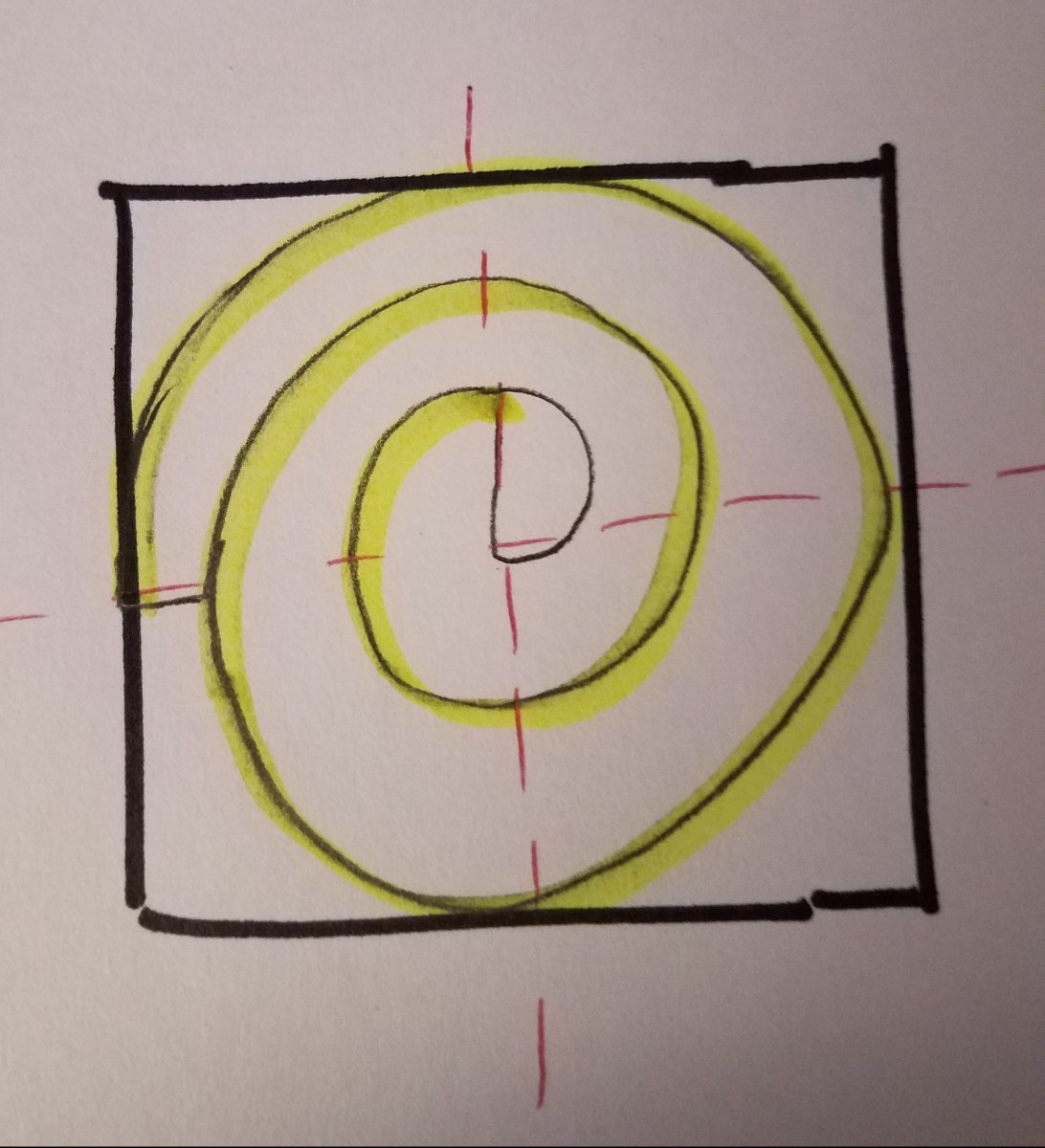 the yellow marks the outside edge of the ruffle