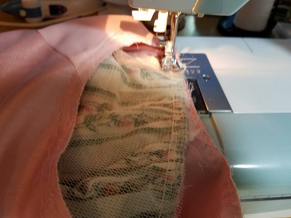 stitching pre-gathered bedskirt into the armscye