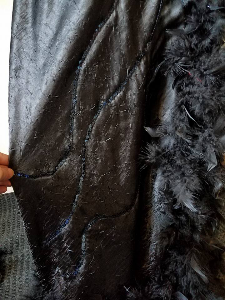 black sequins appliqued in a swirl design
