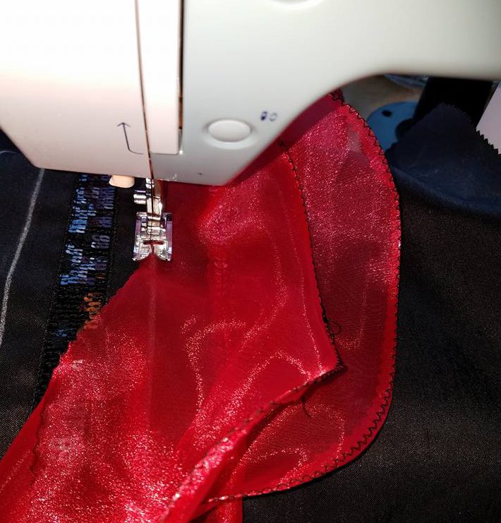 stitching parallel lines of ruffles on to sleeve