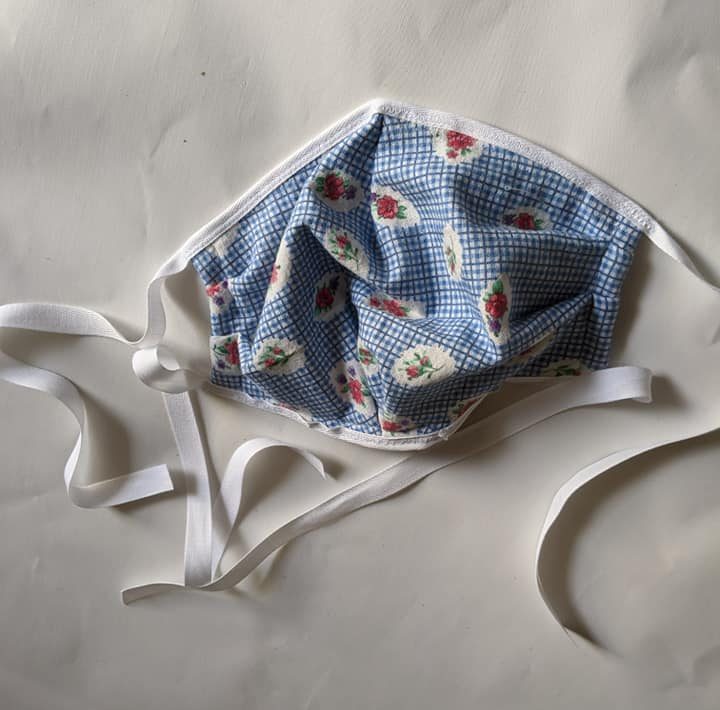 Finished mask with sewn on ties.