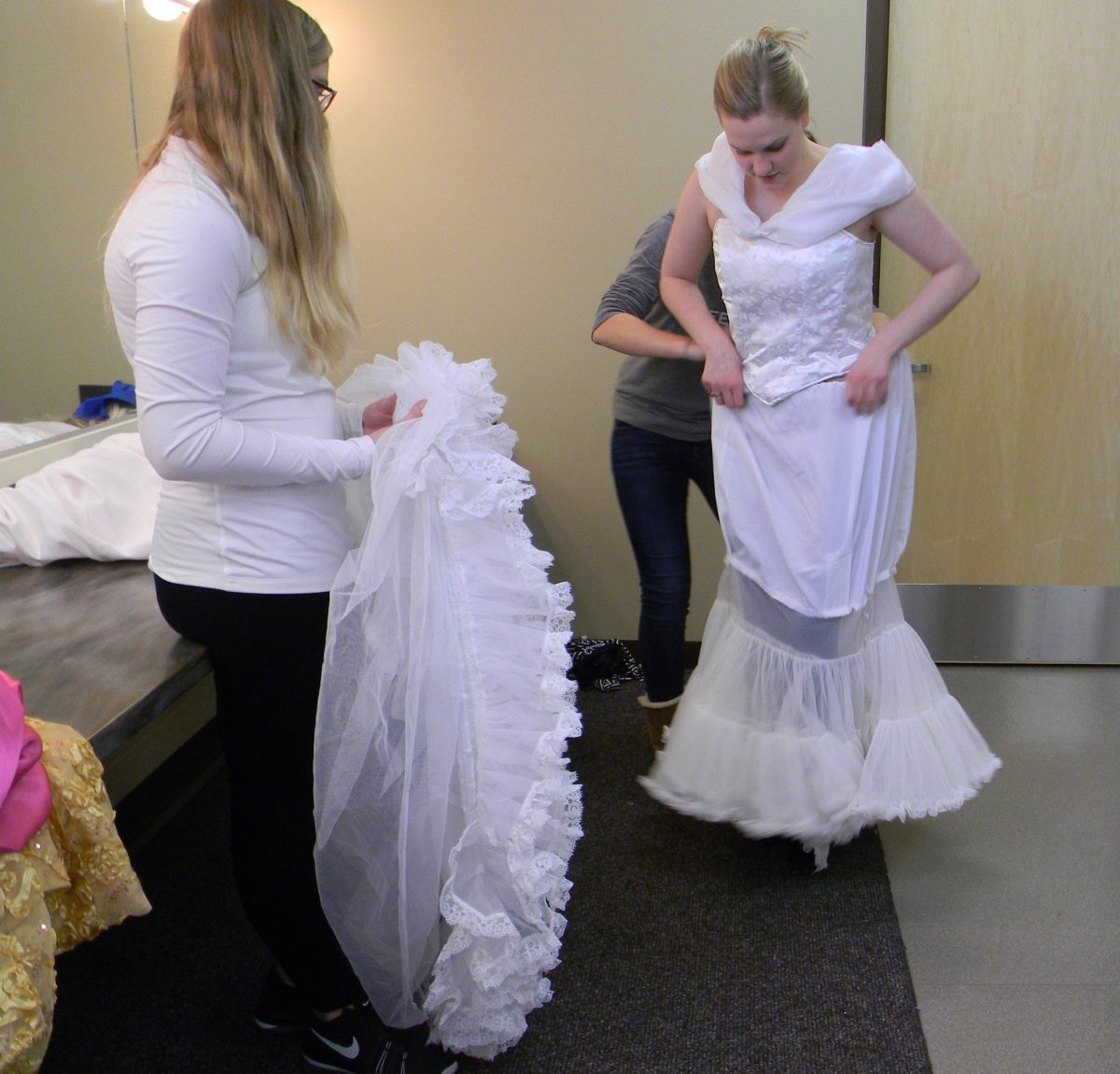 pulling up the mermaid petticoat, hoop prepped