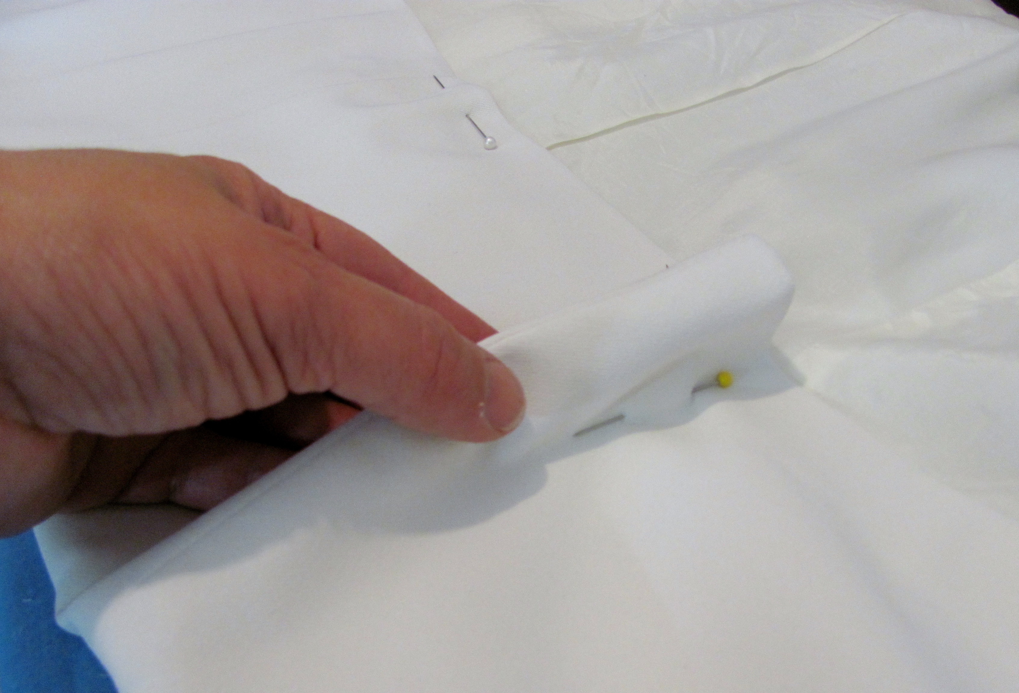 extra fabric pinned out of the way