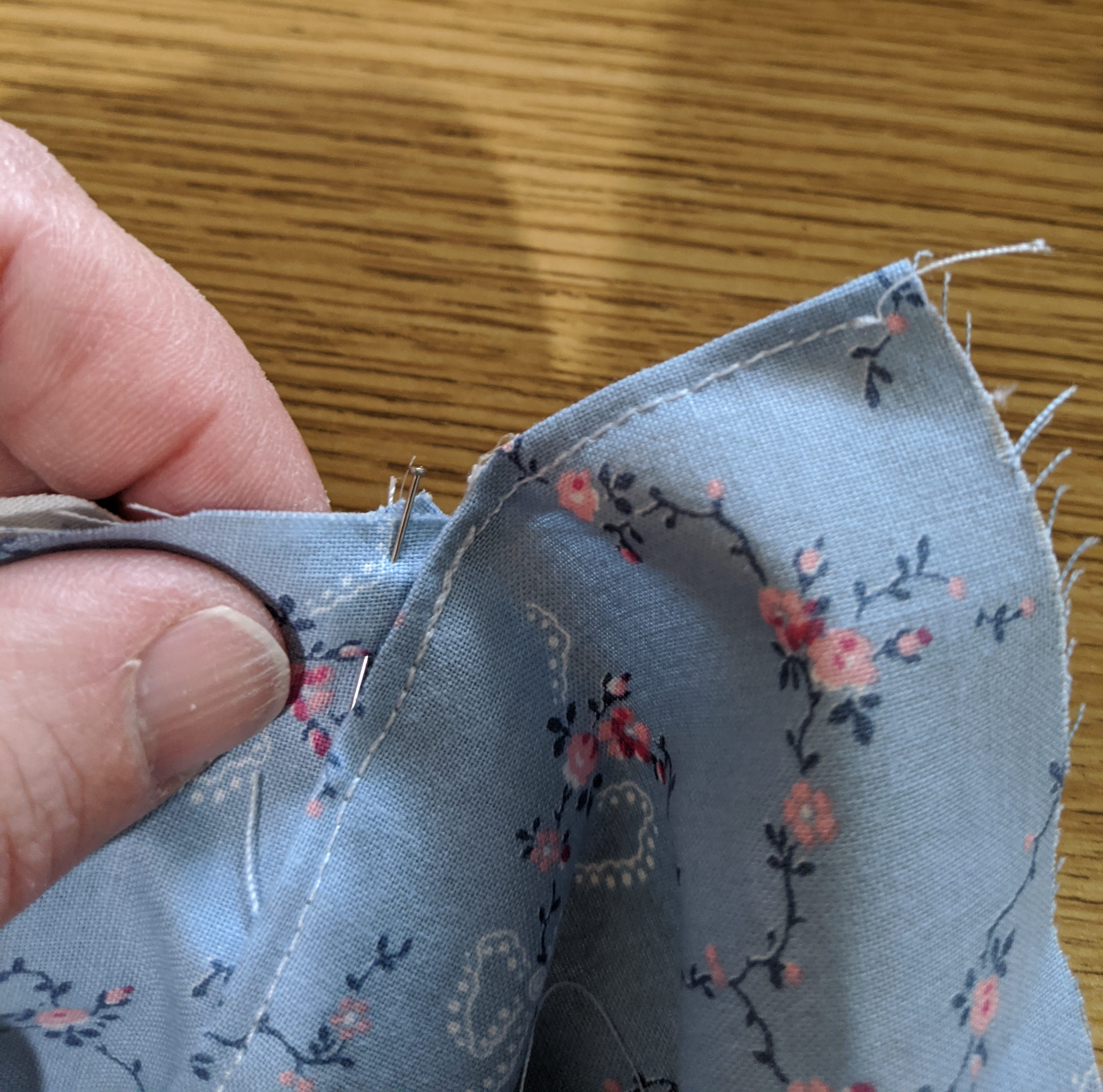 top view, brim pinned to edge of seam, costumecrazed.me hat
