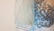 I am almost getting to the end of the Cinderella Waltz dancers. I put these eight girls in pastels and tried to make their dresses fairly homogeneous. This next dress wasn’t my first choice, but I was running out of time and options. I began with this older Prom dress: The lack of a…